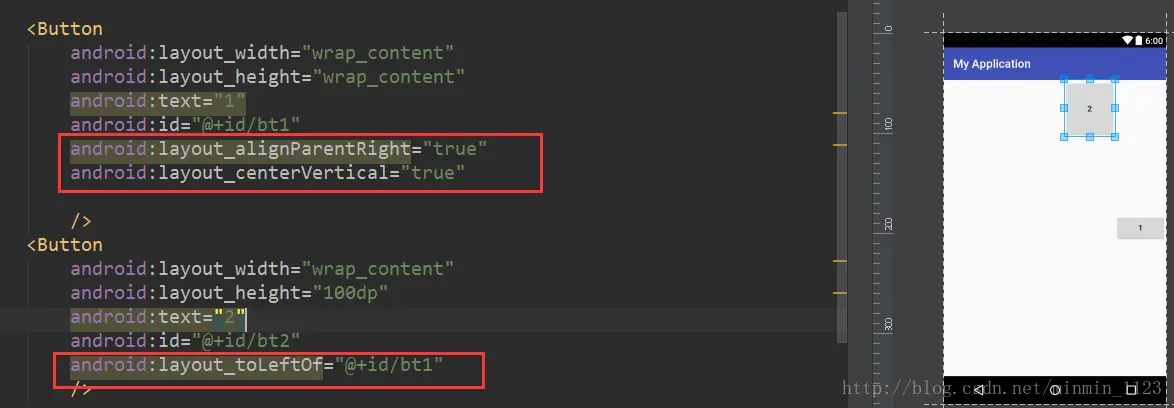注意相对布局里没有layout_weight属性,上面展示的第一种相对于父容器的属性就就足够。