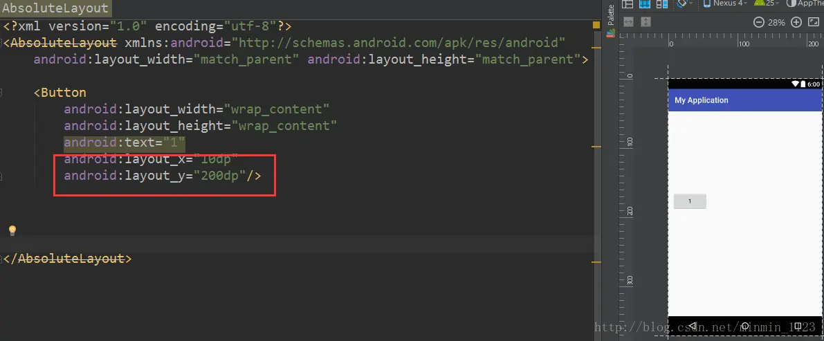 绝对布局是子控件通过它x,y位置来决定其位置。即android:layout_x和android:layout_y属性。但是绝对布局不常见,用x和y决定的控件在不同大小的适配屏幕上的位置直观上会变化,在一个屏幕上的右下角并不代表在另一个屏幕上也是右下角,适应能力差,所以AS也告诉我们不建议使用。