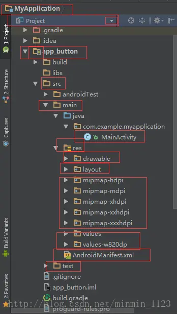 1.项目结构介绍:下图是一个MyApplication工程的列表,接下来将分别对红框内容进行解释。