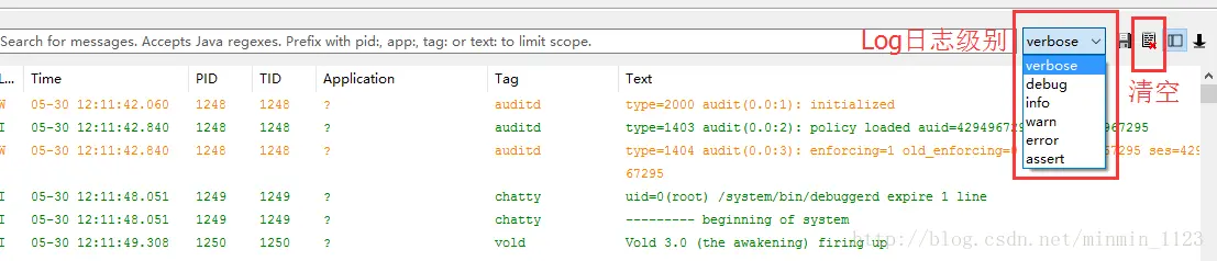 清空标志的含义就是把所有日志清空,然后看在verbose下拉列表中有这五种级别:
