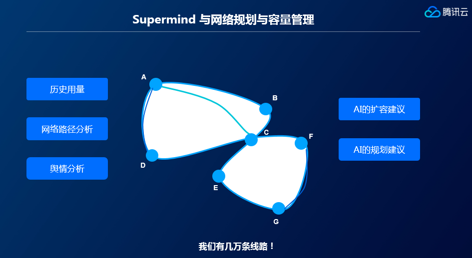 “网络大脑”的智力高低正成为制约网络规模和复杂度可持续发展的关键因素,腾讯云网络团队也将始终保持着对人工智能新能力新技术的敏锐探索,将网络系统的设计、管理、运营、优化、安全进行智能升级,让人工智能来帮助网络工程师,更好地管理日益复杂和庞大的云计算网络。