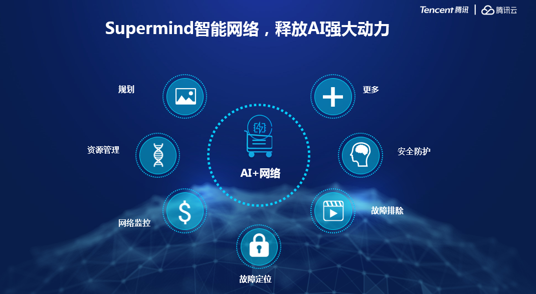 网络数据中心正在不断向人工智能(AI)时代演进,在Gartner发布的《2017数据中心网络魔力象限报告》中,将分析和基于意图的网络(Analytics and Intent-Based Networking)是八大市场趋势之一,腾讯云推出Suermind 智能网络,以大数据为基石,提供网络数据分布式采集、存储、分析中心,将网络拓扑管理、故障定位,故障自愈,网络安全等应用与深度学习、人工智能等前沿技术结合,轻松应对百万级设备的网络高效运维,释放AI强大原力。