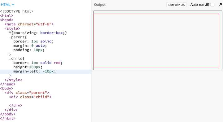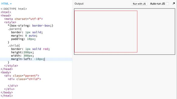 .parent 里面的 .child 宽度为 300px,现在我给他添加一个 margin-left: -10px,会发现