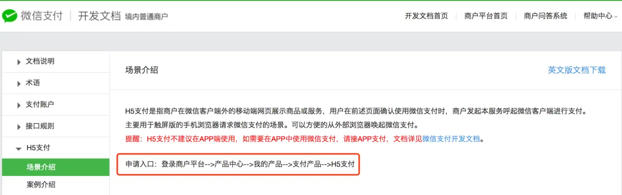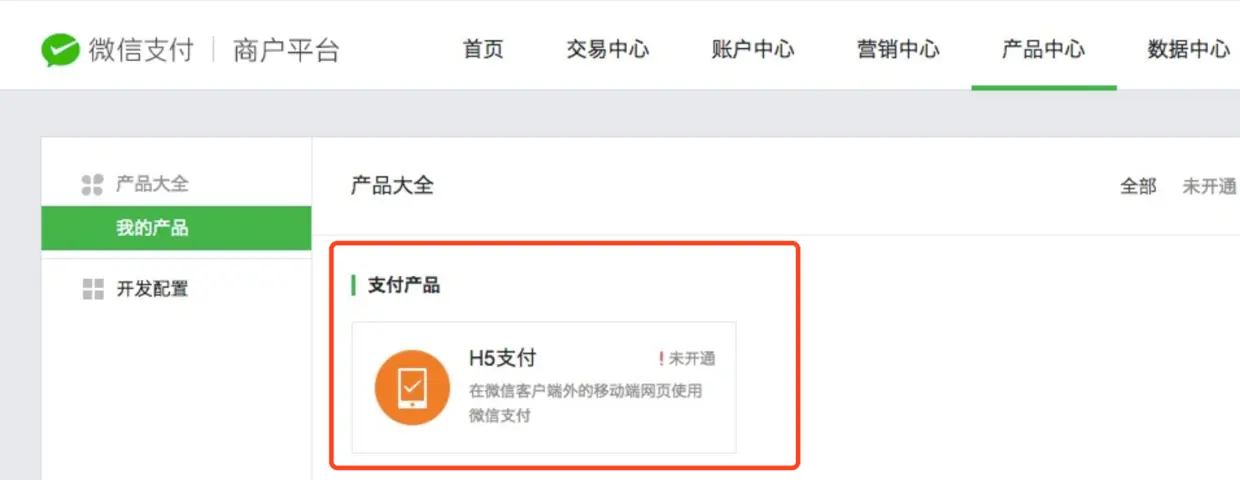 按照微信支付官网 H5 支付说明 ,目前是没有直接申请接入 H5 支付的入口,只能在微信商户平台中去另行开通。然鹅~微信商户平台账户也不支持直接注册申请,只能先注册微信开放平台后接入微信 App 支付后才会有商户账号分配。