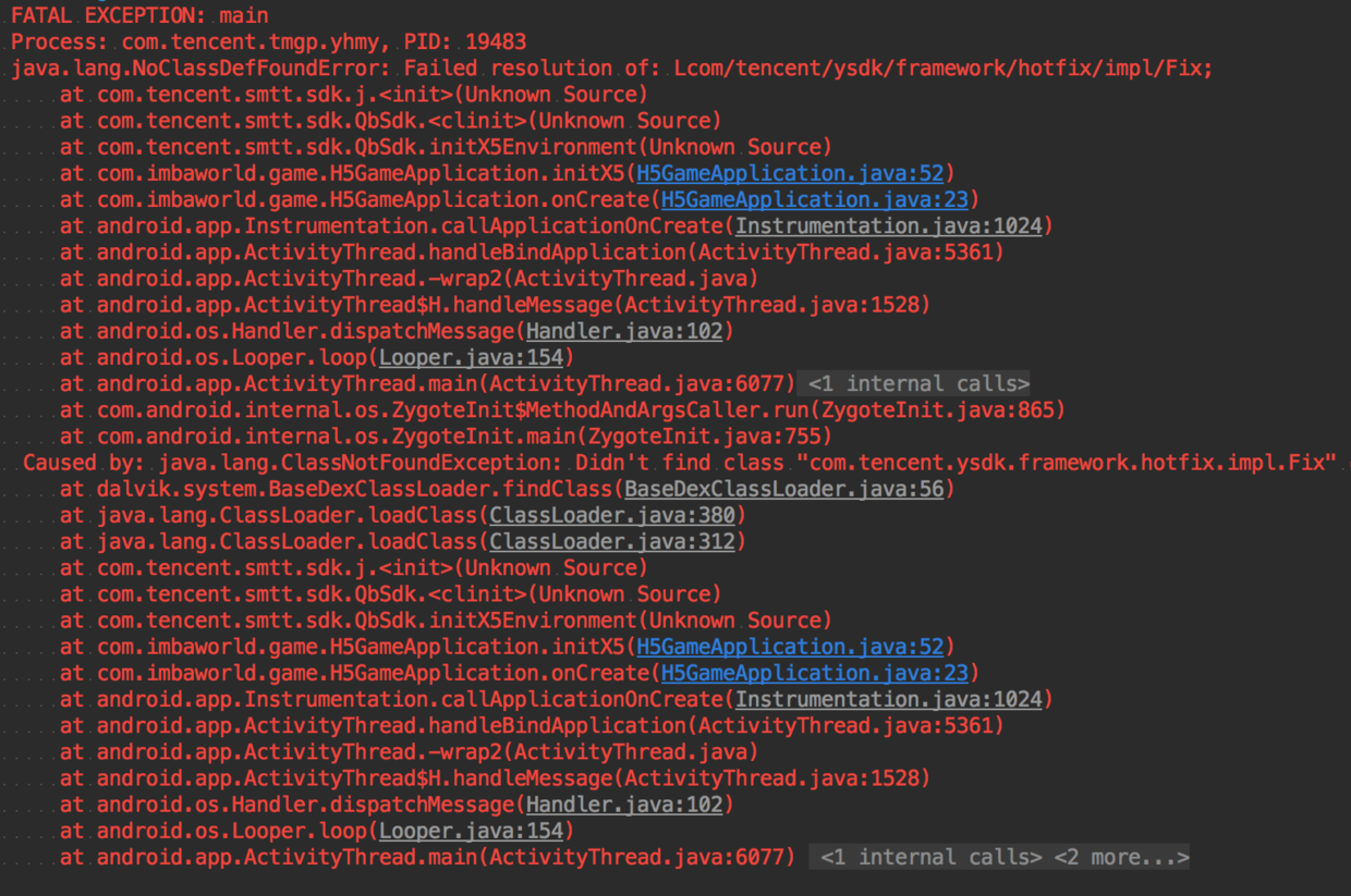 java.lang.NoClassDefFoundError: Failed resolution of: Lcom/tencent/ysdk/framework/hotfix/impl/Fix;