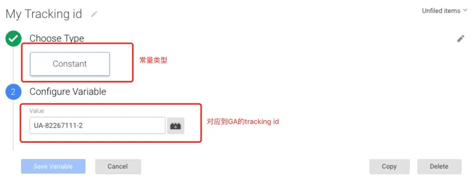 创建一个常量类型的变量,用于保存Google Analytiecs的tracking id