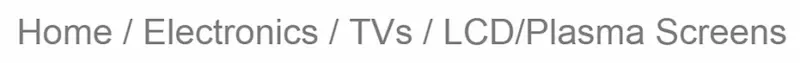 - 使用箭头作为分隔符,而不是斜杠(/)。为了清晰分开每一层,推荐(>)或(→),因为这些符号的指向能辅助用户理解。斜杠(/)不建议作为电子商务网站的分隔符。如果您打算使用它,请确保产品类别将不会采用斜线: