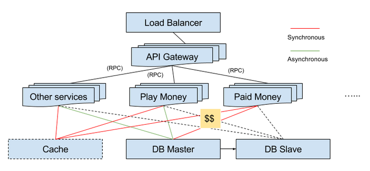 我对新架构挺满意的,直到有一天,我发现游戏币的接口越来越慢了。这些接口一般只会对cache进行操作,虽然cache会被定期刷到持久层(DB),但并不会阻塞调用返回。我发现写cache应该不会变的这么慢,而且其他类似的服务也确实并没有变慢。