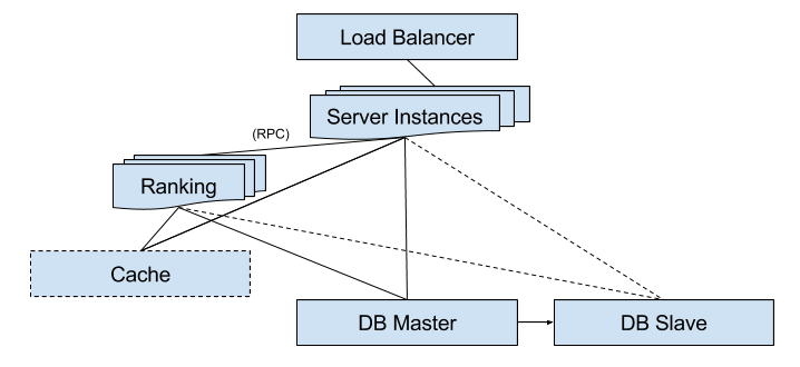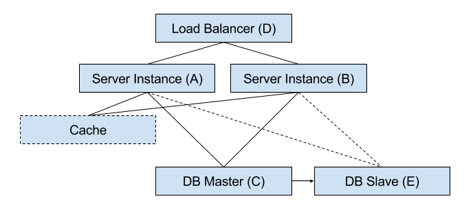 最开始,我把整个后台放在一台机器(A),然后后台程序通过lo来访问数据库。直到有一天硬盘坏了,然后啥都没了。于是我认识到"单点"的危险性,所以我对服务程序在(B)上做了冗余,并且把数据库放到单独的一台C上。为了能同时访问A和B,我在D上配置了一个nginx的逆向代理。直到有一天,C的硬盘坏了,然后啥都没了。于是我认识到所有的"单点"都有风险,所以我给DB做了master-slave. 最后,我加了个cache层做加速。