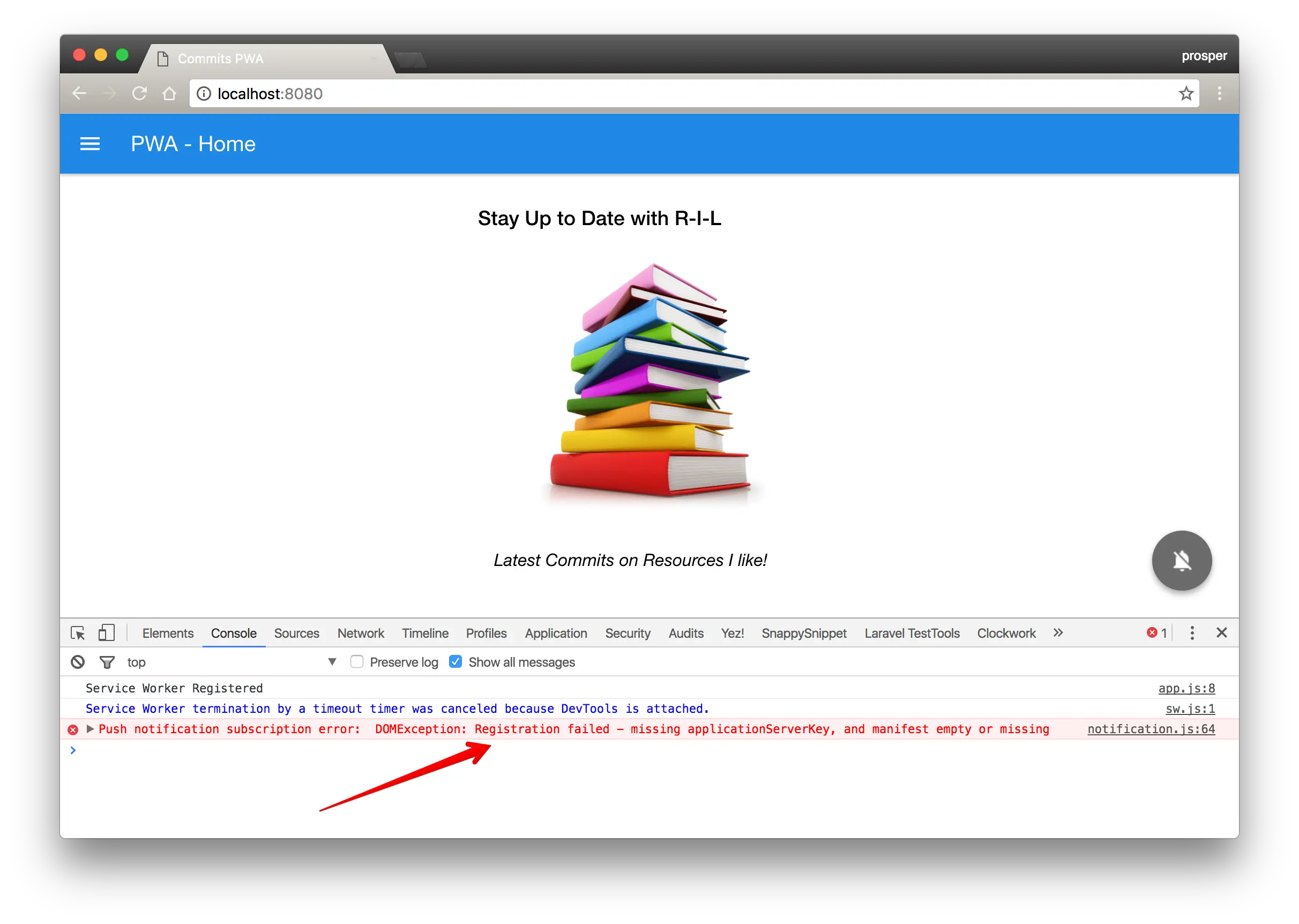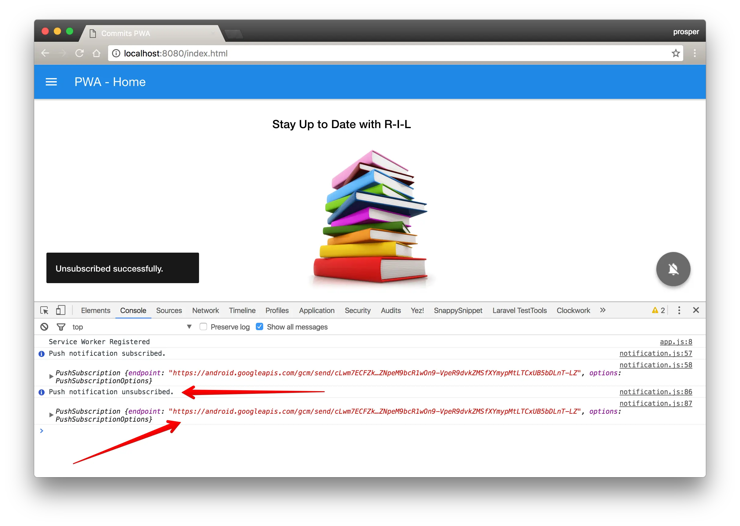 现在,清楚缓存,刷新应用,然后点击消息推动按钮