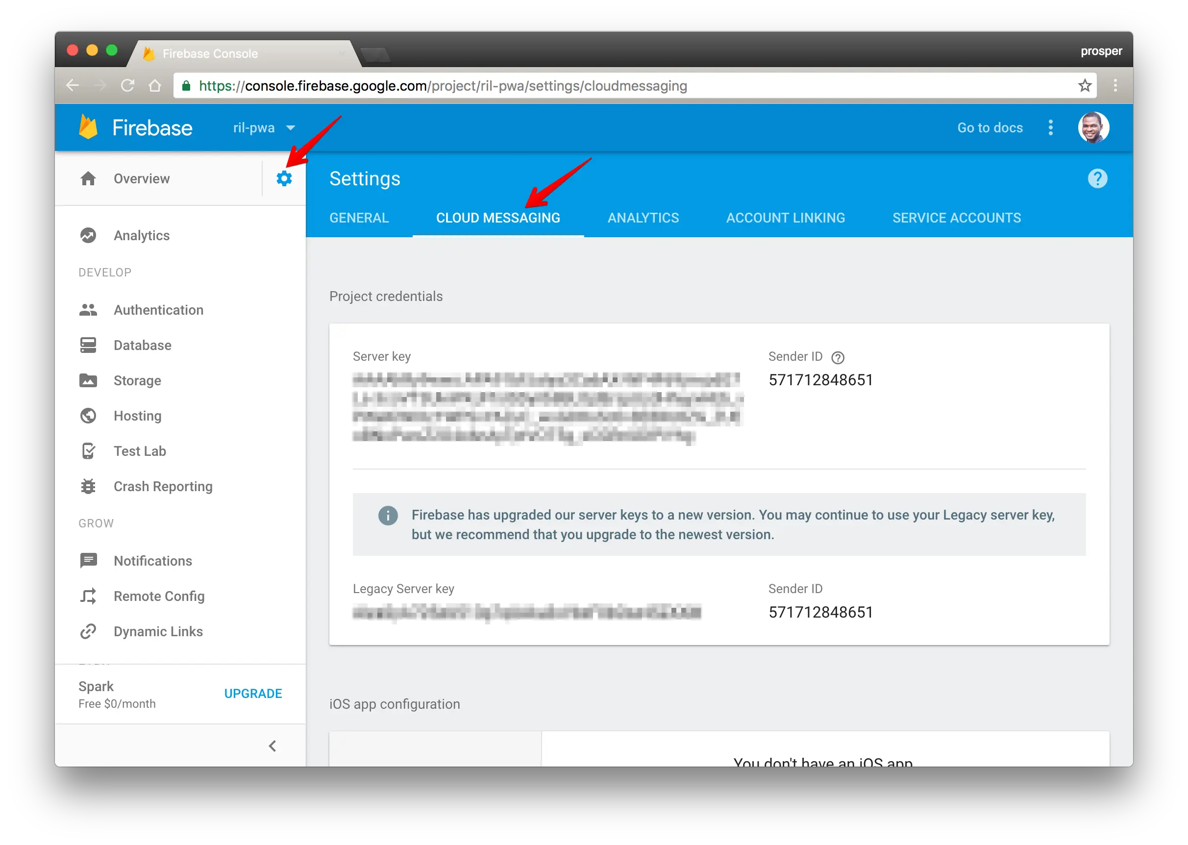 Firebase的sender_id,在下面取得。如下图
