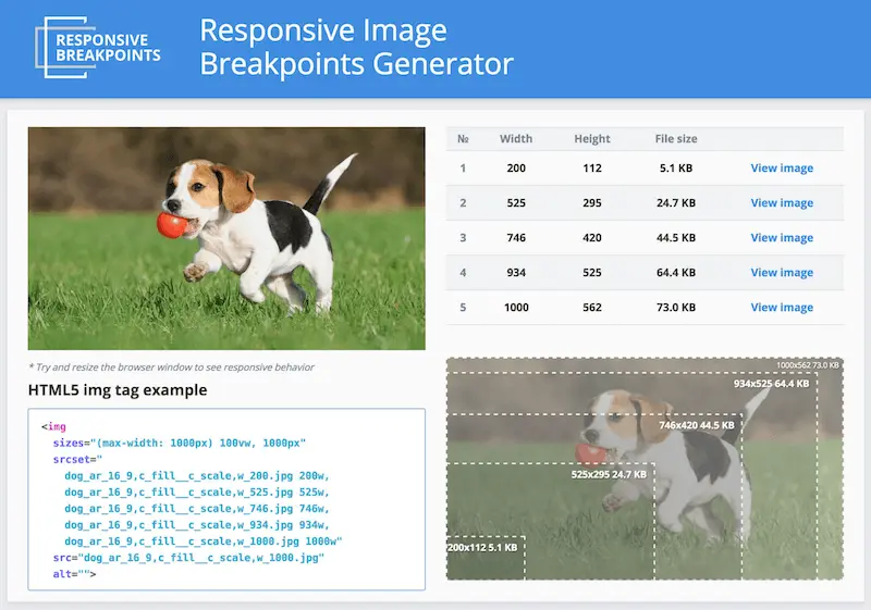 Responsive Image Breakpoints Generator 可帮助您生成及管理图像的不同尺寸。