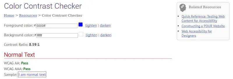 你可以使用WebAIM的[色彩对比度检测器](webaim.org/resources/c…)来确定是否处于最佳范围内。