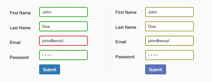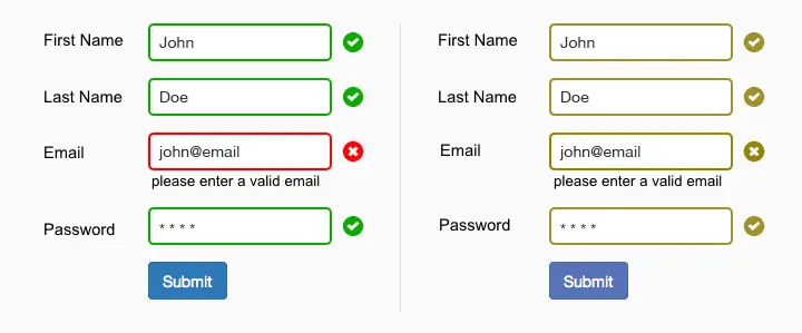 不好:这种形式仅仅依靠红色和绿色来表示字段有没有错误。色盲用户是无法识别的。