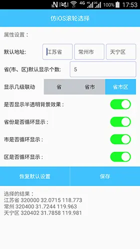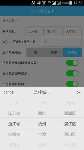 本次更新为3.0.0版本,重大更新,强烈建议升级为最新版本,该版本彻底解决加载慢的问题,采用预先加载本地城市数据的方法。同时支持自定义省市区item布局的属性,更开放的使用方式,完全符合你自身的需要。还不赶紧升级使用,还在犹豫什么?有问题请提issue,第一时间解决你的问题。