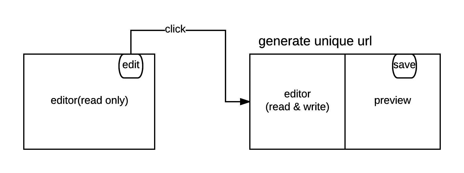 默认只能展示代码,并且可以切换文件。当点击编辑按钮之后编辑器变为可写模式,同时生成唯一的链接保存与展示用户代码,cmd/ctrl+S操作与点击save按钮都能触发编译过程,并且会异步的将最新代码保存到数据库中。