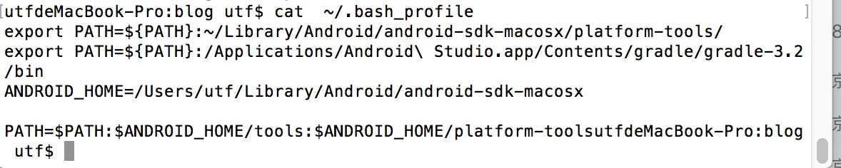 - mac 上建立 "~/.bash_profile" 文件, 配置gradle路径