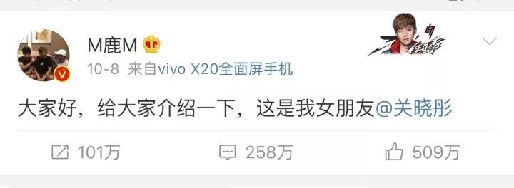 最近,鹿晗爆出了与关晓彤的恋情 2天时间这条宣布恋情的微博光点赞就有509万! 一瞬间微博和娱乐圈都炸了!