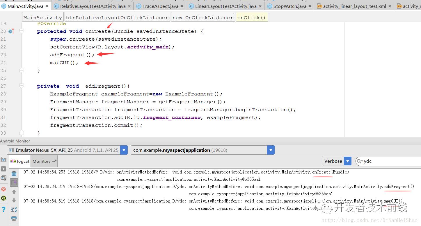 Fragment的中的方法监控 上面我已经演示过Activity中的方法强势插入,在Fragment中依然可行