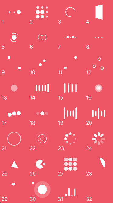 它的作者是一名在阿里巴巴就职的开发者(Jack Wang),如下面的效果图所示,这个库是很多简洁的等待动画效果合辑。