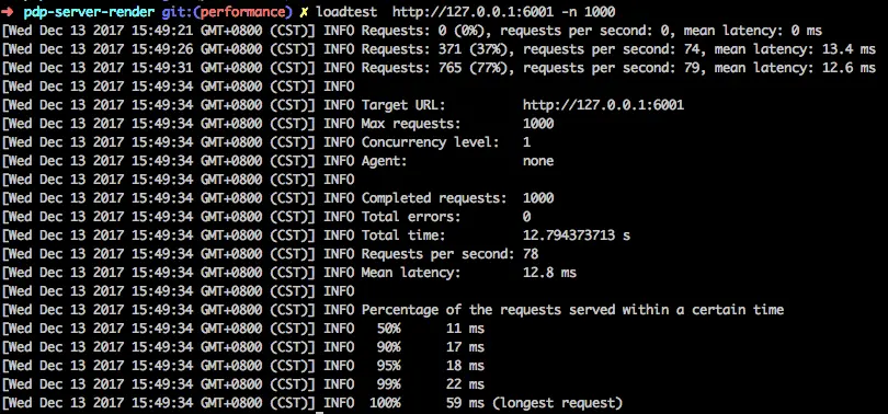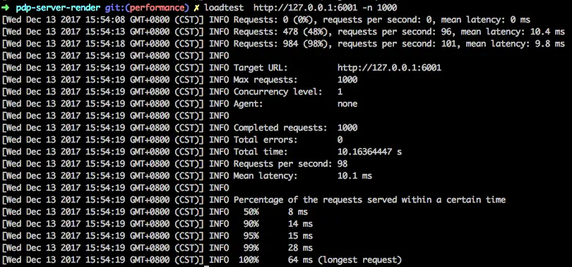 通过loadtest请求1000次,统计平均RT, 初始RT为15.8ms