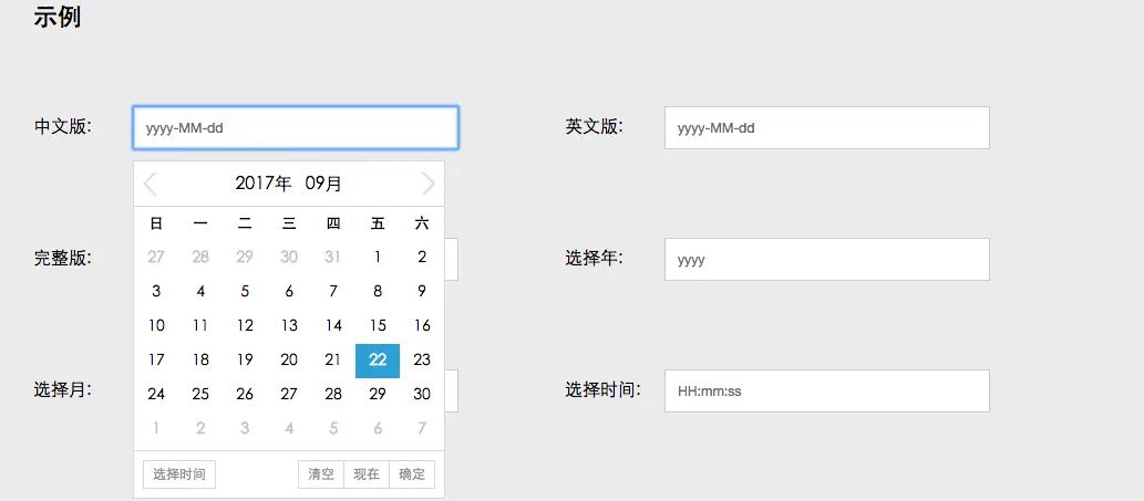 format:'yyyy-MM-dd HH:mm:ss', 时间格式化