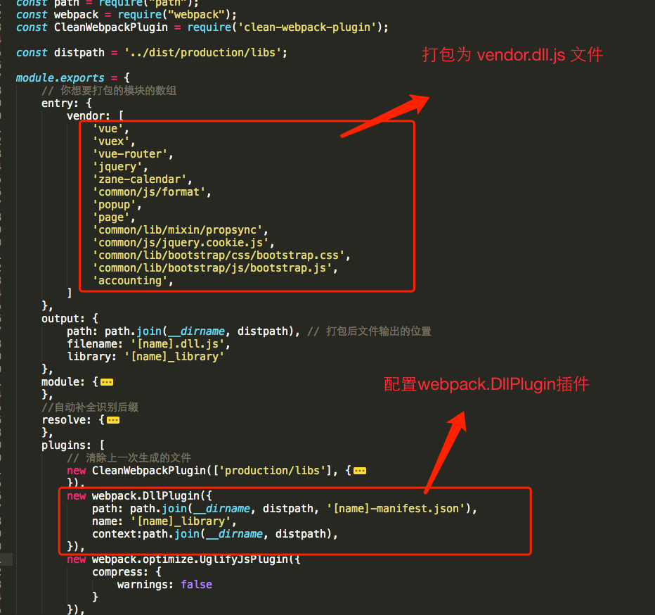 注意事项:webpack.DllPlugin 和 webpack.DllReferencePlugin 的context 配置需要保持一致。