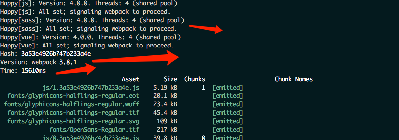 3.配置了happypack和webpack-parallel-uglify-plugin插件之后时间为 15~16秒 (可见构建性能有很大的提升)