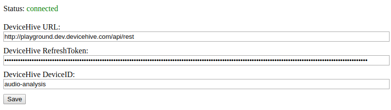 最后但是也是比较重要的一个:集成在 IoT 基础设施中。如果你运行了我们前面提到的 web 接口,你可以在索引页面上看到 DeviceHive 客户状态和配置。只要客户端已经连接成功了,预测结果会以通知的形式发送到特定的设备上。