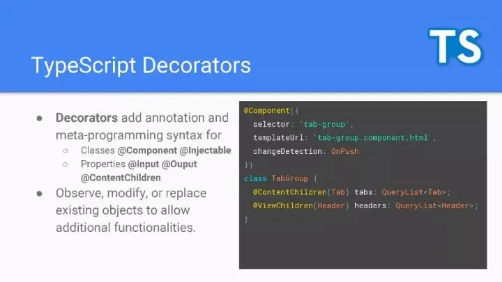 还有就是依赖注入,这个对于写过很多单元测试的朋友应该不陌生。它能帮助我们在Angular组件里去更好地和服务以及内部一些API进行连接,我们作为开发者就不用太过担心怎样管理这样的一些关系。