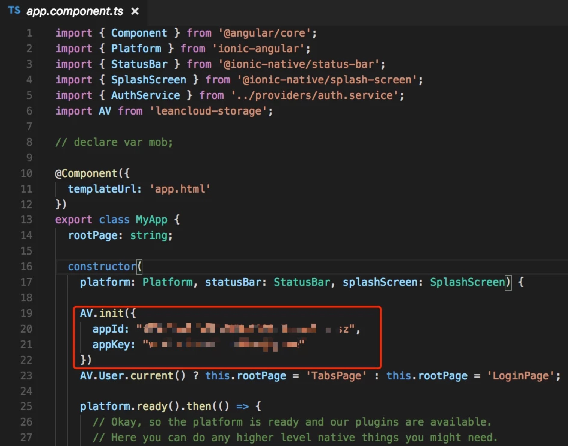 初始化 SDK,设置 ID 和 Key: