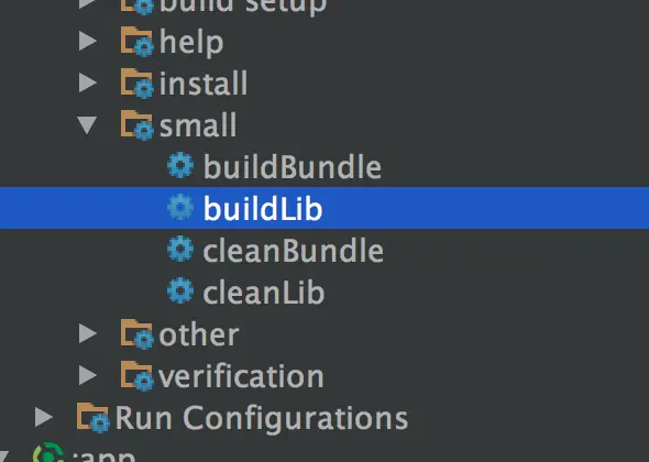 但 Small 对于项目结构的要求比较严格,比如宿主最好就是刚开始新建项目时候的 app 应用,这个名字最好不要改,Small 会通过名字来寻找宿主和插件。插件业务模块命名以 app.* 和lib.* 作开头,包名最好也要以 app.或者 app 结尾,插件业务模块都是可以单独打包的模块,这些模块和 app 一样.
