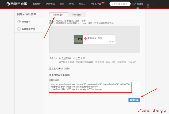如下图,可以在网易云音乐里搜到你想要引入的音乐,然后点击如下的 “生成外链播放器” 即可: