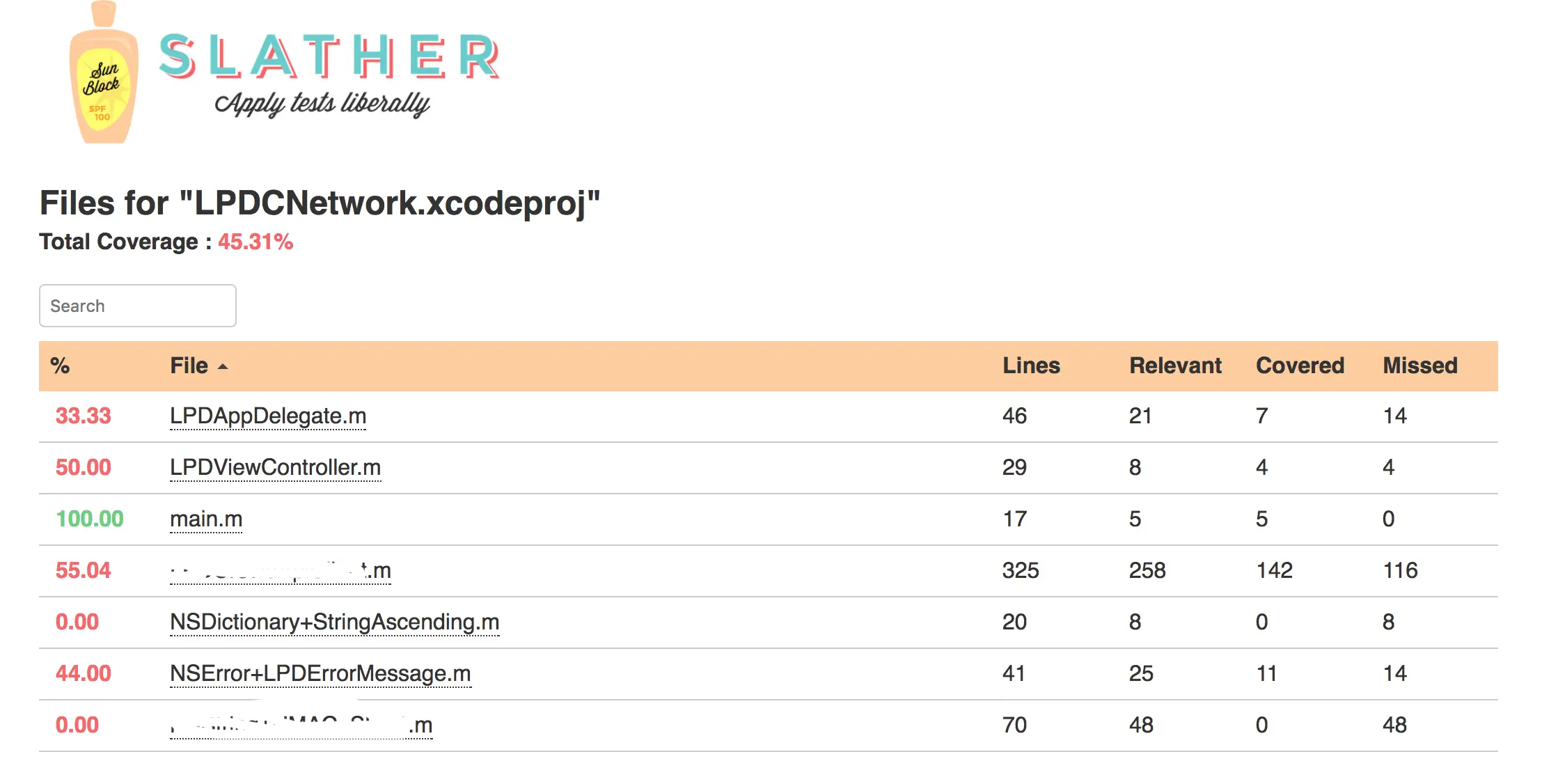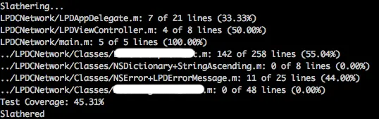 slather是一个专业用于xcode生成测试代码覆盖率报告的工具。安装可参见github。当我们运行单元测试后,可在根目录执行: