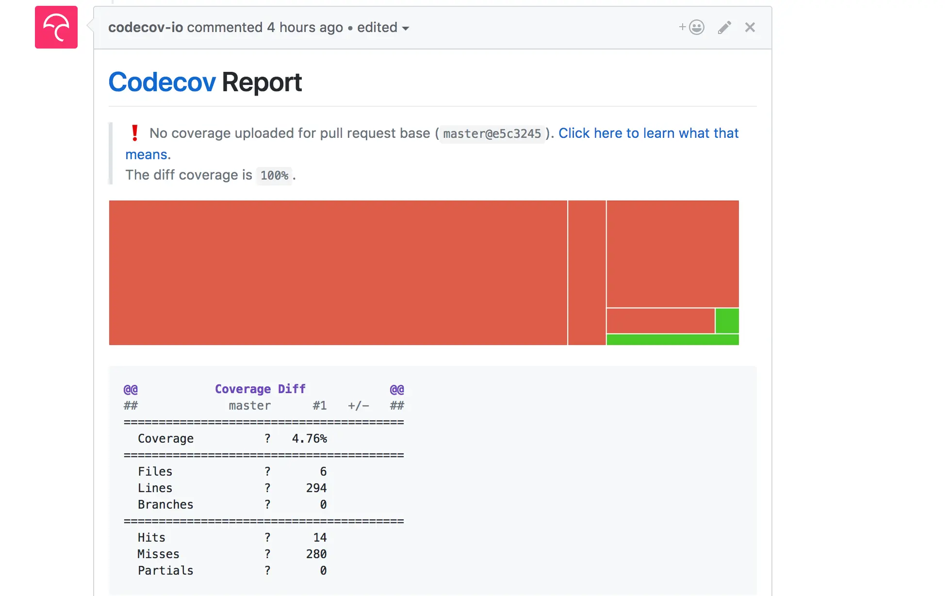同样,在pr页面可以看到codecov的覆盖率概览报告。