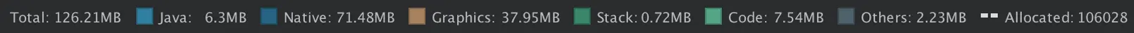 - Native:从C或c++代码中分配的对象的内存,即使你没有在app中使用c++,你可能会看到一些本地内存,因为Android框架使用Native内存来处理各种任务,比如处理图像资产和其他图形——即使你写的代码是Java或Kotlin