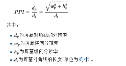 ppi, pixel per inch ,每英寸的像素数,像素密度;表示图像或者显示器单位面积上像素数量。