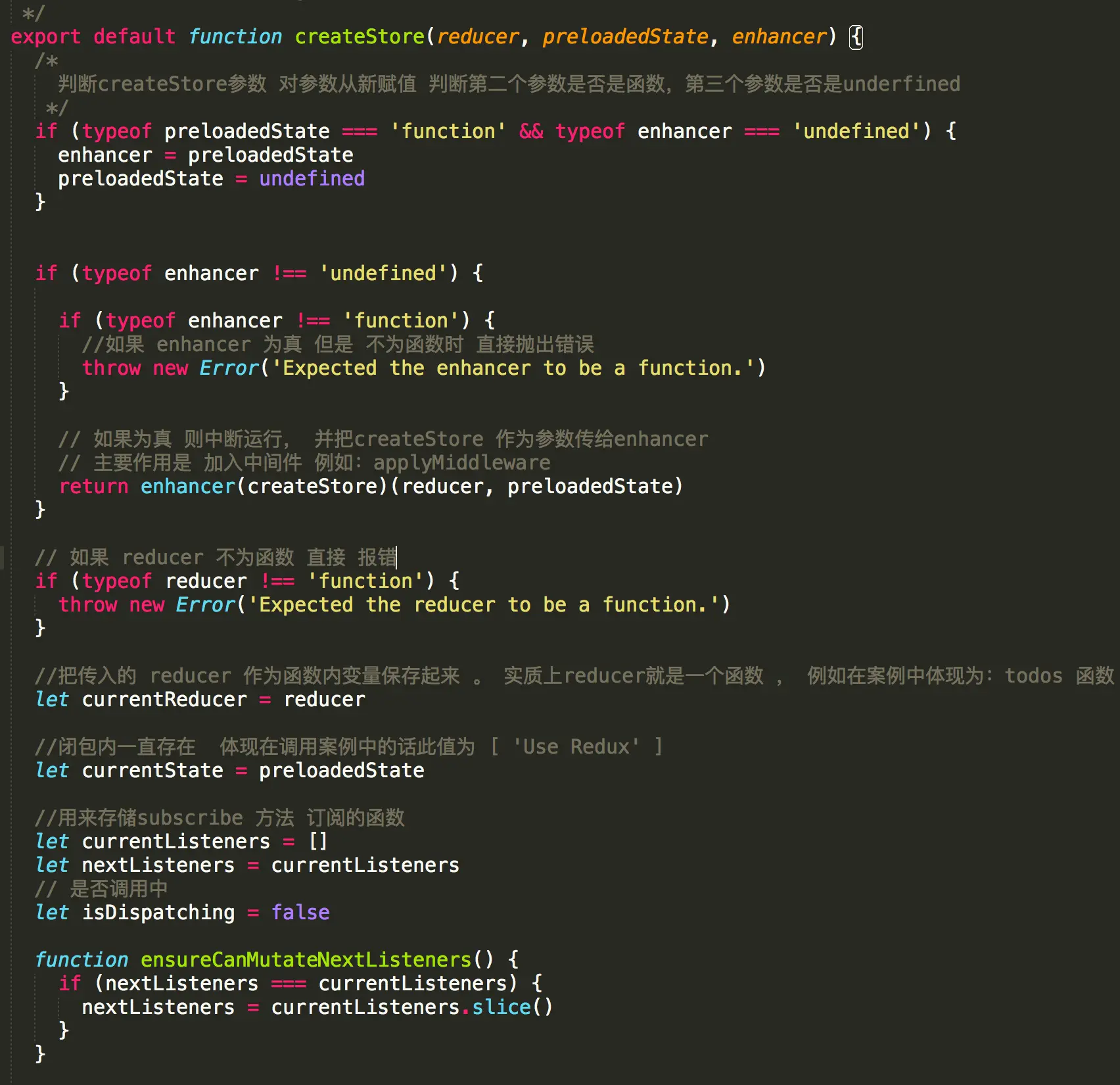 function createStore(reducer, preloadedState, enhancer){}2.createStore内部添加,getState、subscribe、dispatch、replaceReducer 4个空函数,并return出来