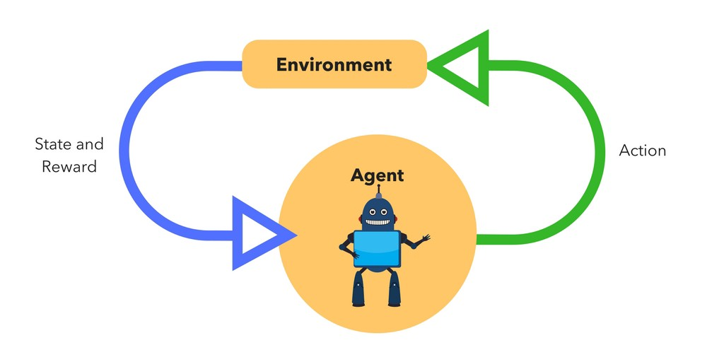这个行动的目的是使下一次观察到的结果比前一次好。在我们的这个例子里,就是要得尽可能多的分数。为了得最高分,游戏媒介也就是游戏机器人会选择并实施行动,然后施加在环境上。环境根据行动是否有利,比如游戏是否胜利,来记录下这个行动造成的新状态和奖励情况。