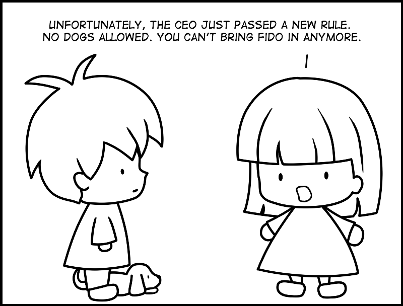 一个坏消息,老板定了个新规矩,公司不能养狗,嗯,就酱。