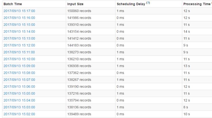 我们设置了一分钟一个批次消费,每分钟有10万+数据从storm过来,只花了10秒钟左右处理完,所以如果我们缩短消费批次窗口,理论上还可以提高5-6倍的吞吐,如下图3。