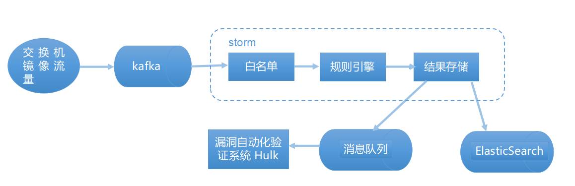 目前nile系统我们改进到了第五版,架构如下图2,其中最重要的改变是在规则引擎之前加入了spark机器学习引擎,目前使用的是spark mllib库来建模和预测。如果机器学习引擎为黑,则会继续抛给正则规则引擎做二次检查,若复验依然为黑,则会抛给hulk漏洞验证系统。