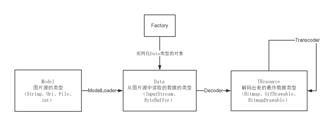 而Factory、ModelLoaderFactory、Encoder、Decoder、Transcoder则是串联上面三种类型的桥梁: