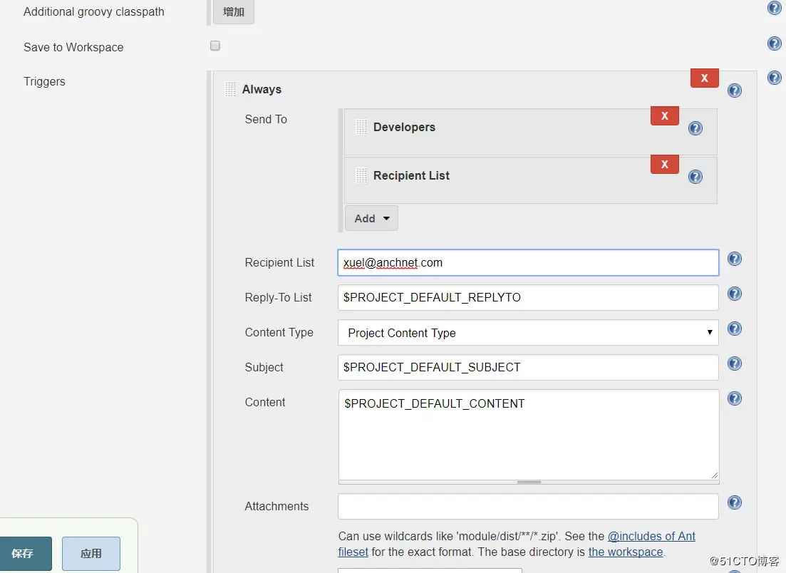 可以根据需求自定义邮件主题与内容,此处添加信息接受人,由于全局配置了always,在高级设置内,填写接受人邮箱。