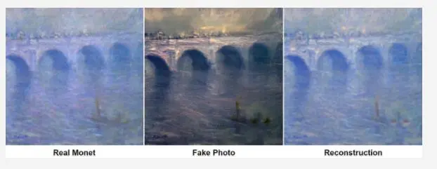 与其它人工智能绘画不同,CycleGAN 的研究团队试图建立一个可双向转化不丢失信息的双向算法。在 CycleGAN 里照片的细节被要求完全保留,研究人员希望能够将一张图片输入 CycleGAN 后进行多次反复转化(照片→绘画→照片→绘画→照片),最终可以获得与原始照片相同或相近的图片。