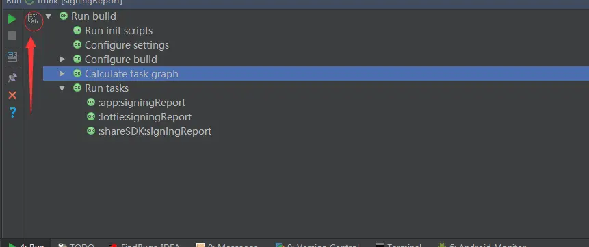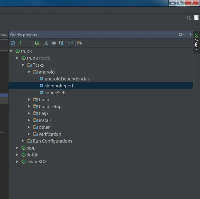 第一步,点击右侧的Gradle-项目-tasks-android-signingReport