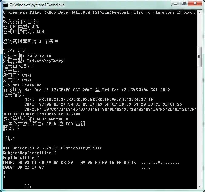 有效期开始日期: Mon Nov 23 09:43:59 CST 2015, 截止日期: Wed Nov 15 09:43:59 CST 2045