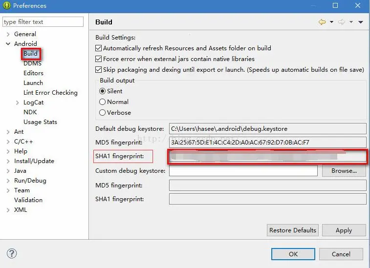 与Windows 不同的是,mac 需要.android 的目录 cd .android ->keytool -v -list -keystore debug.keystore
