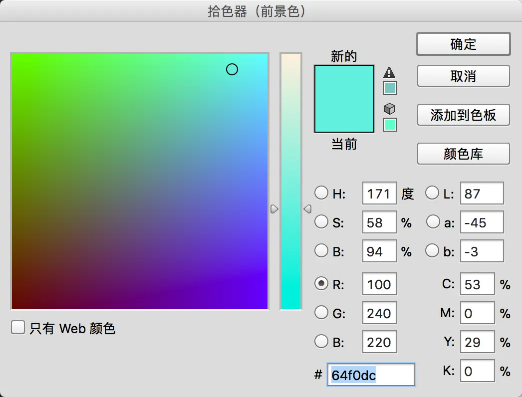 我们可以通过使用HSV工具,确定绿色HUE值的大概范围为50-170