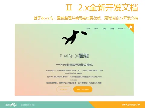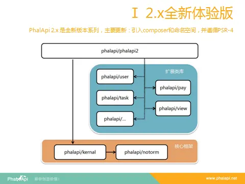 PhalApi 2.x 是全新版本系列,主要更新:引入composer和命名空间,并遵循PSR-4